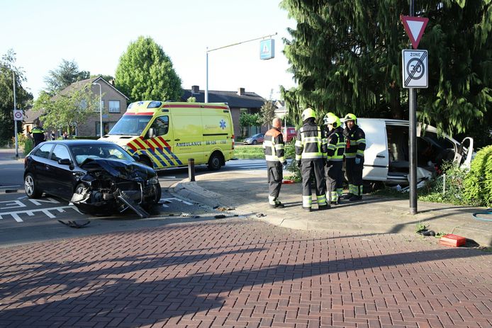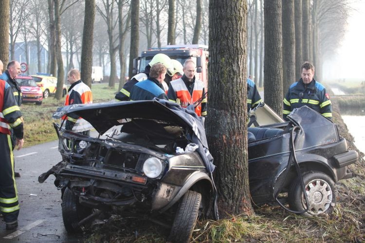 Een auto knalde door nog onbekende oorzaak tegen een boom en kwam.